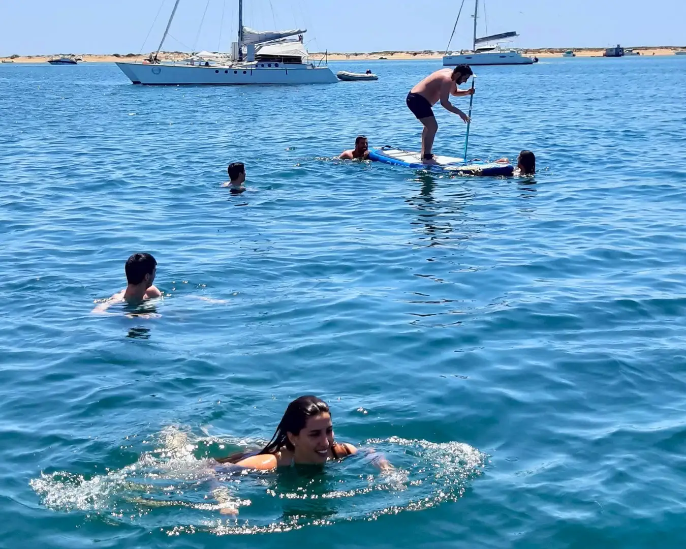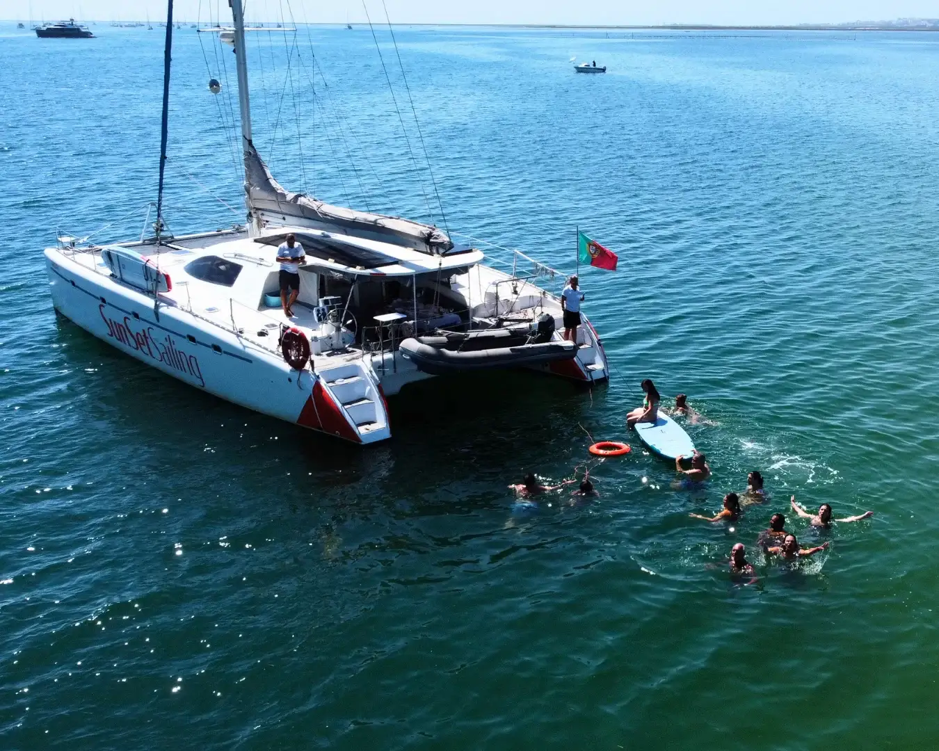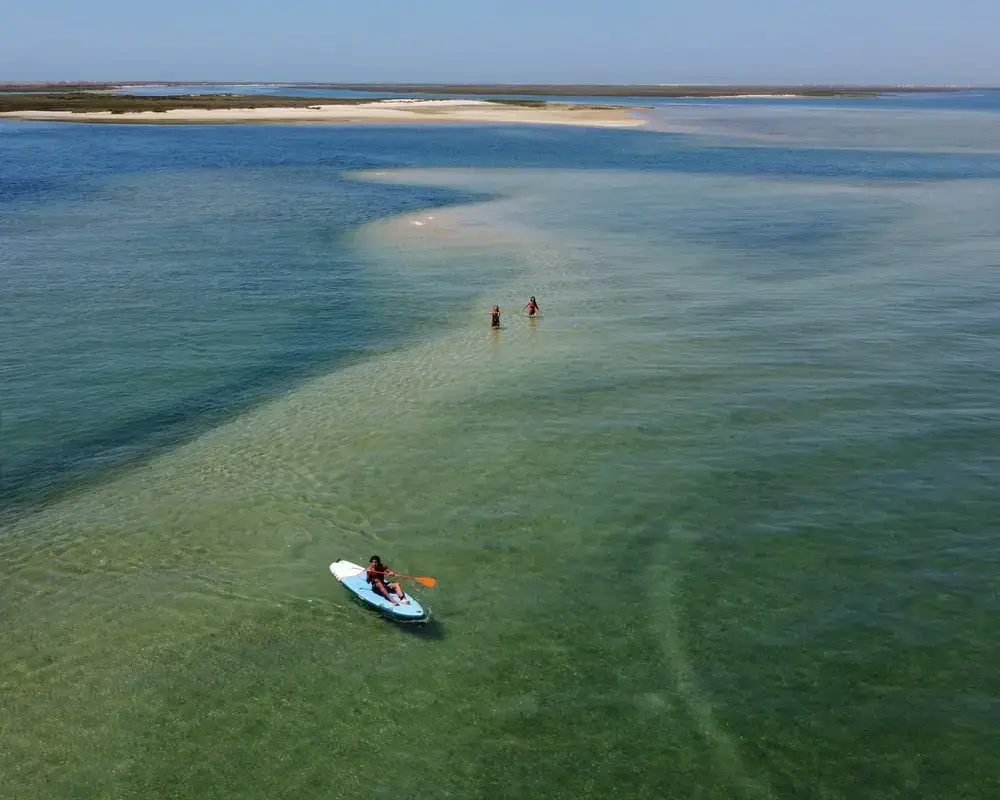 Perfect for those with less time or travelling with younger children, the half-day tour packs plenty of Ria Formosa’s beauty into four unhurried hours. Departing in the morning or afternoon, you’ll cruise past sandy islets and turquoise channels before anchoring at idyllic spots to swim, snorkel, or simply relax on deck with a drink in hand. Paddle boards (SUP) are available on request for those who want to explore the hidden corners of the lagoon. Keep an eye out for native birds and marine life along the way, as this protected natural park is teeming with both.