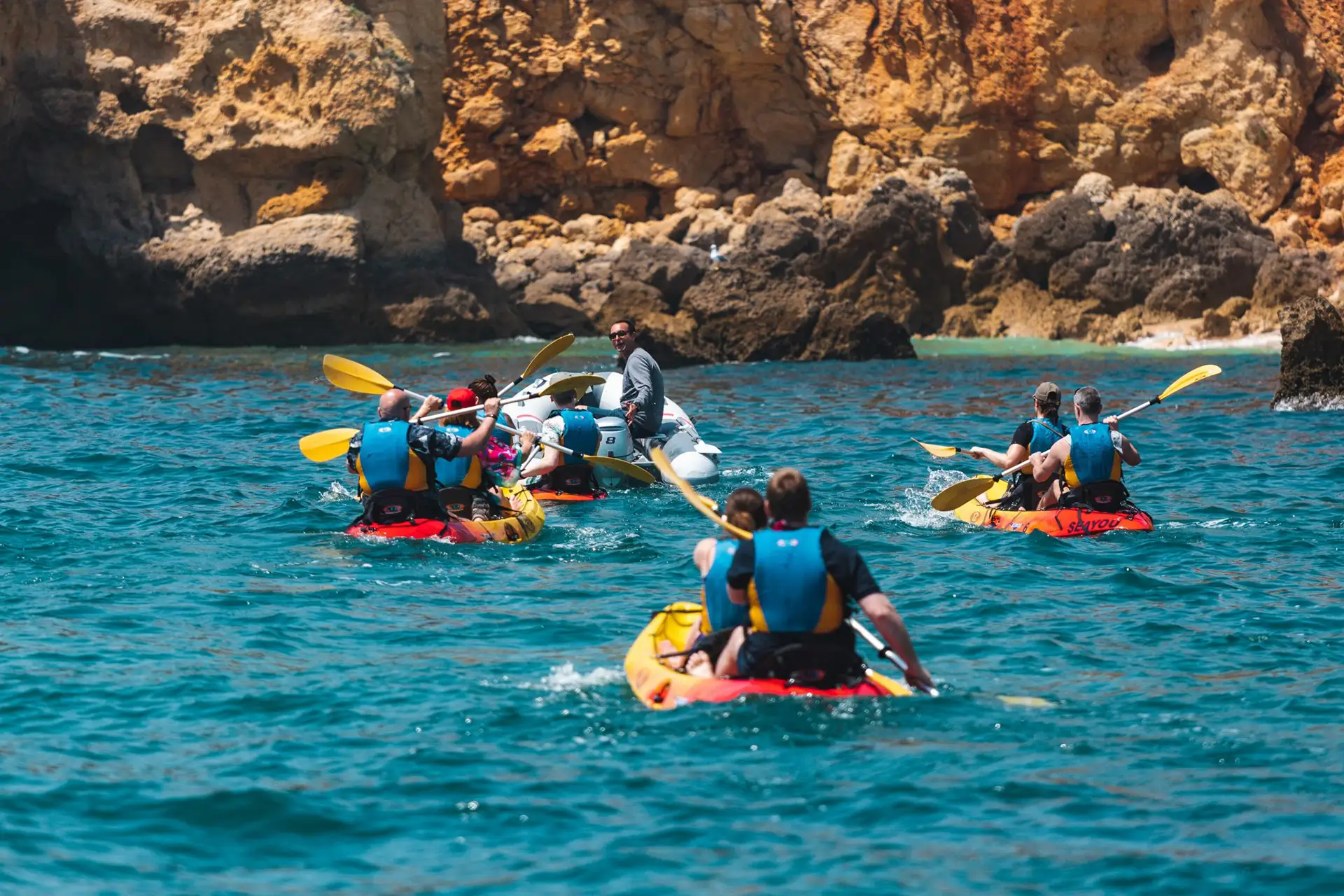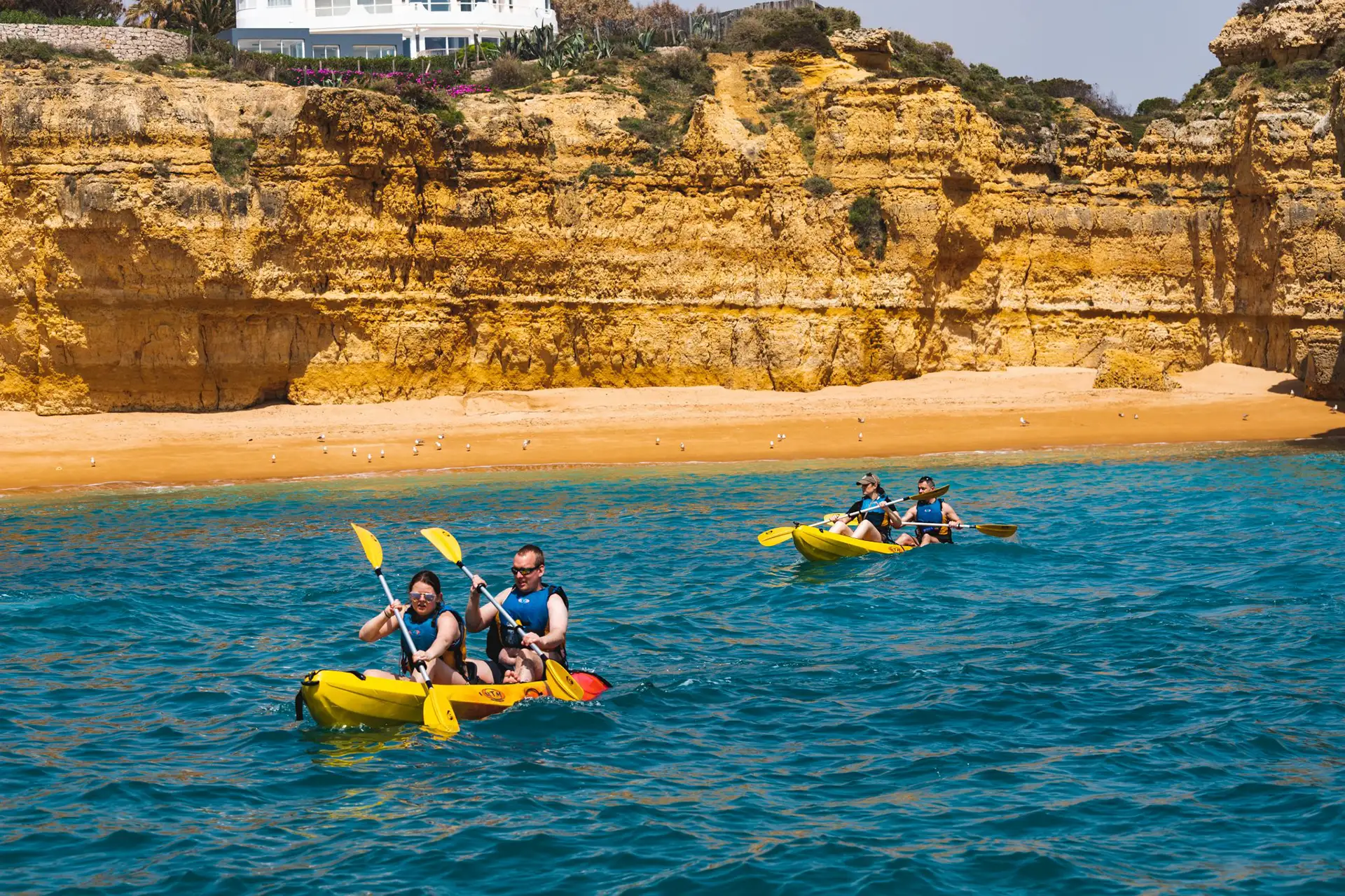 One of the most exciting ways to explore the legendary Algarve coastline is at water level, on your own terms. Launching from Albufeira, you’ll paddle past towering golden cliffs, into hidden sea caves, and alongside dramatic rock formations that no boat can reach. Expert guides, a full safety briefing, and all equipment are included — with a refreshing swim in crystal-clear Atlantic waters to round it all off. Suitable for complete beginners and seasoned paddlers alike, this is a genuinely accessible adventure that stays with you long after the paddle is put down